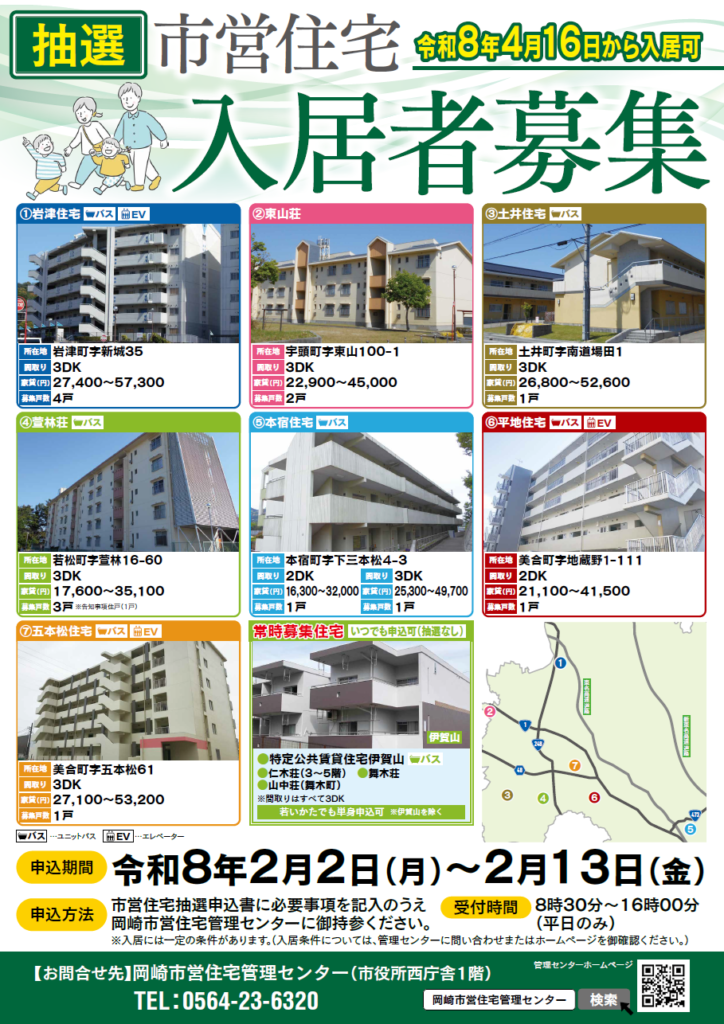 入居者募集(抽選)(令和8年4月16日入居)、常時募集